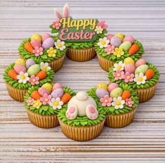 Baking Cupcakes for their 6 Cupcake Easter Wreath